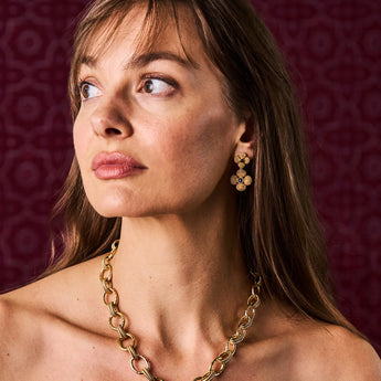 - Golden berries are clustered together in 4-leaf clovers so you can carry a token of luck everywhere you go. With luminous blue labradorite gemstone centers, this pair of earrings can be easily converted to just the studs by removing the bottom clover—making this set a gorgeous and gilded two-for-one. Lucky you!