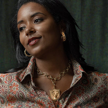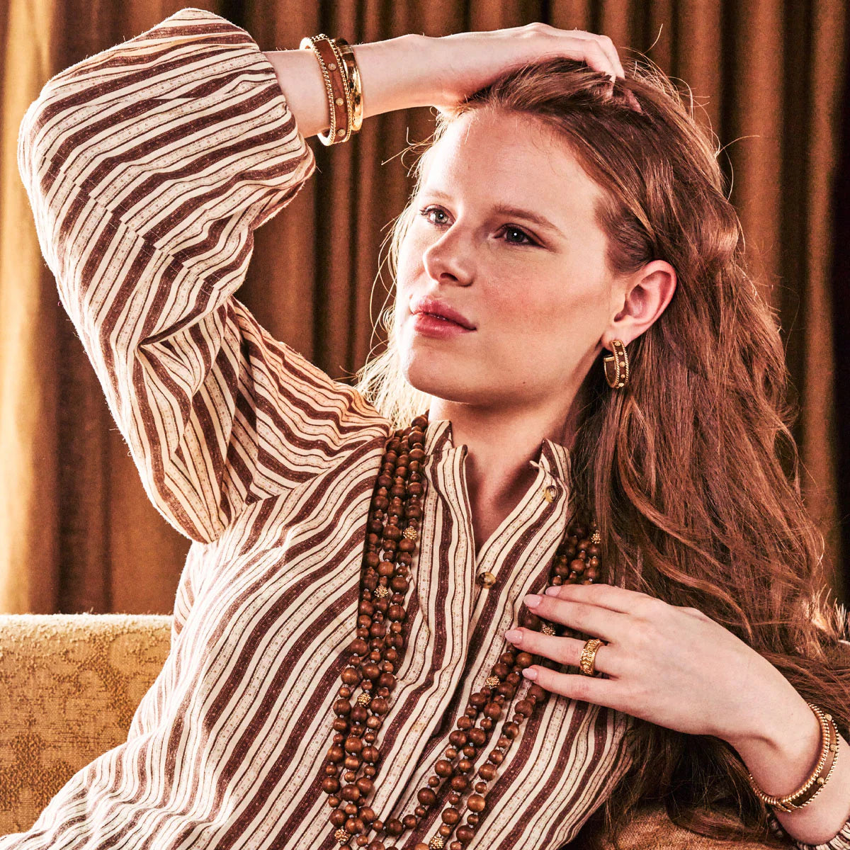 - Teak Wood, 18K Gold over Brass with Anti-Tarnish Coating