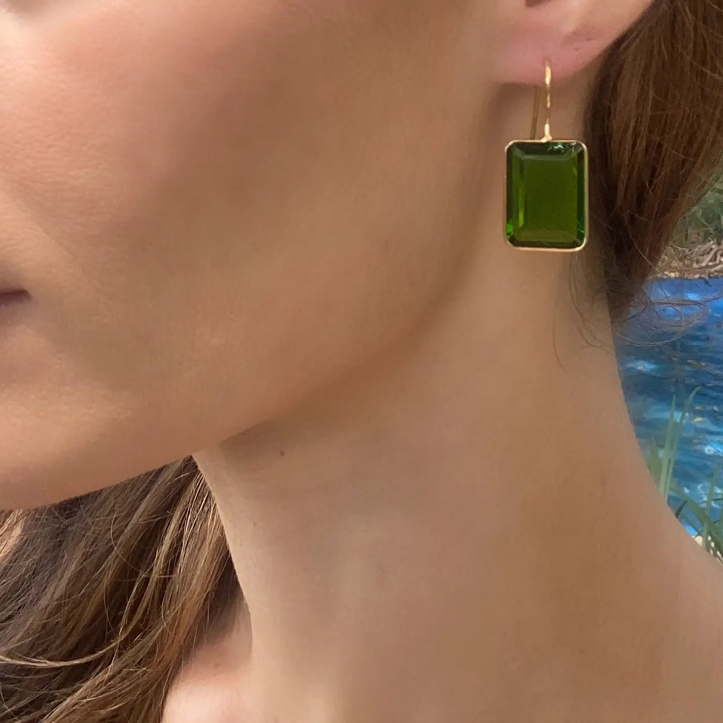 Blush pink quartz is hand crafted in bezel settings and French ear wires, 14k gold plated 1.25" total drop and 5/8" in width.