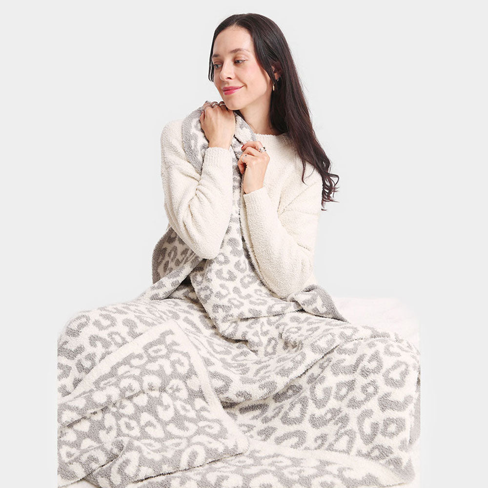 Soft Leopard Blanket Gray
