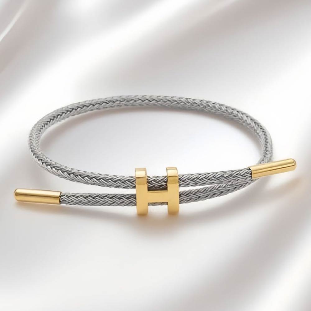 • Sleek braided cord bracelet featuring a bold H accent and adjustable slide design for a customized fit. Lightweight and easy to wear, this modern piece blends minimal style with everyday versatility. Perfect for stacking or wearing solo for a clean, polished look.