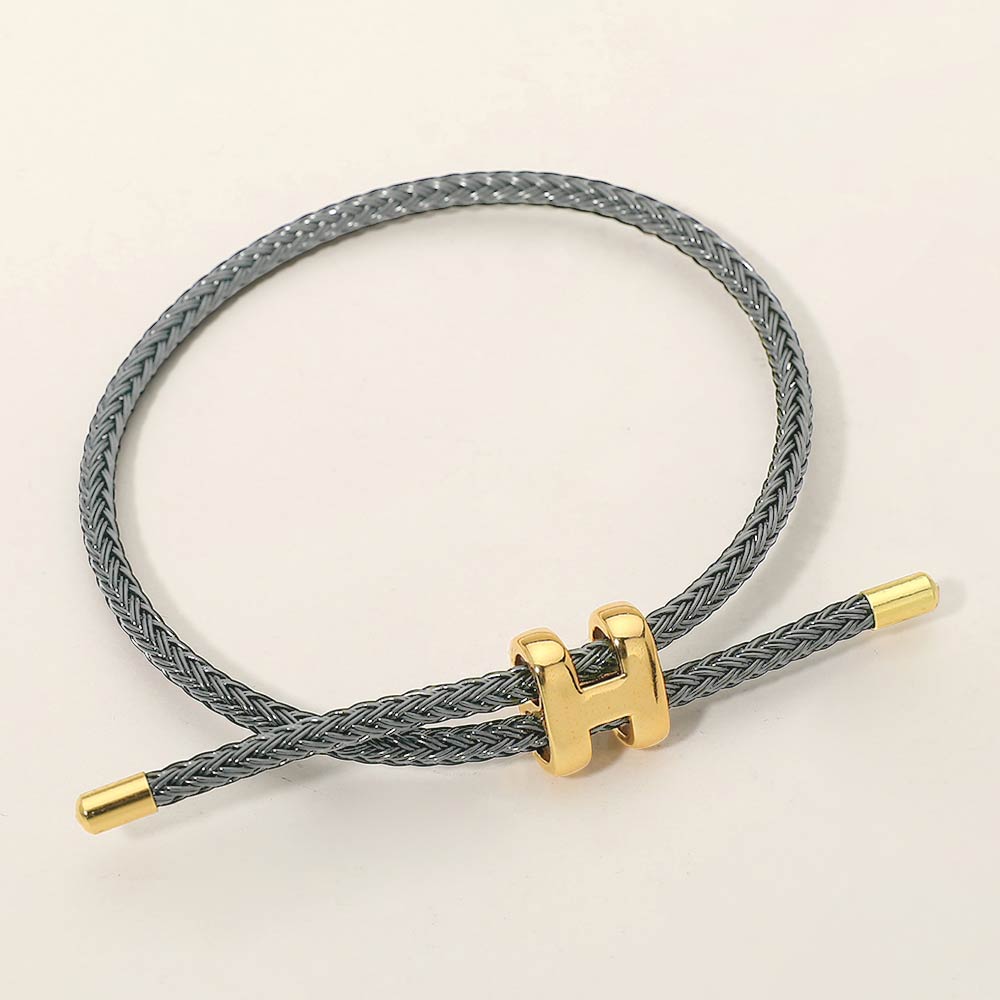 H Monogram Cord Adjustable Slide Bracelet in Grey