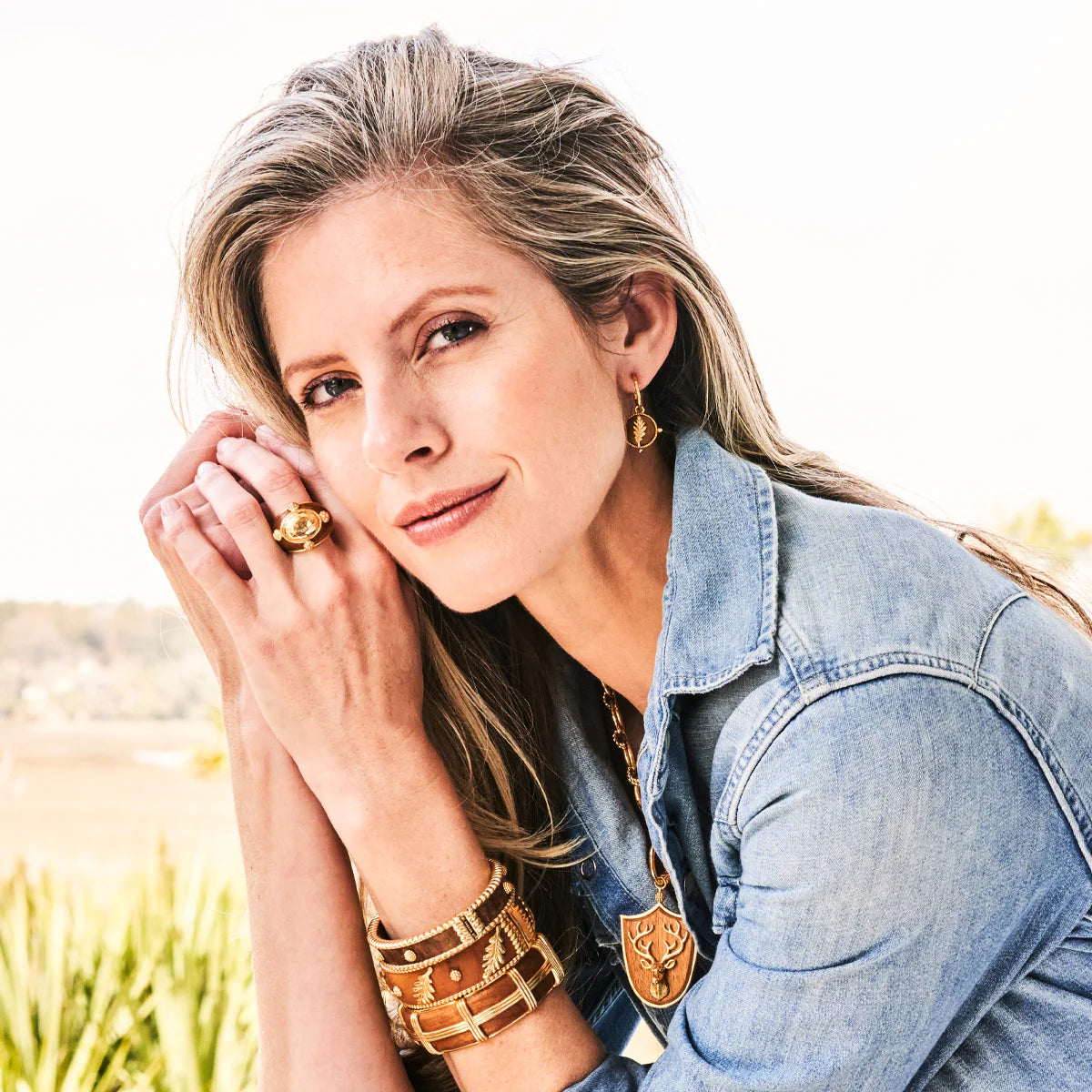 - Teak Wood, 18K Gold over Brass with Anti-Tarnish Coating