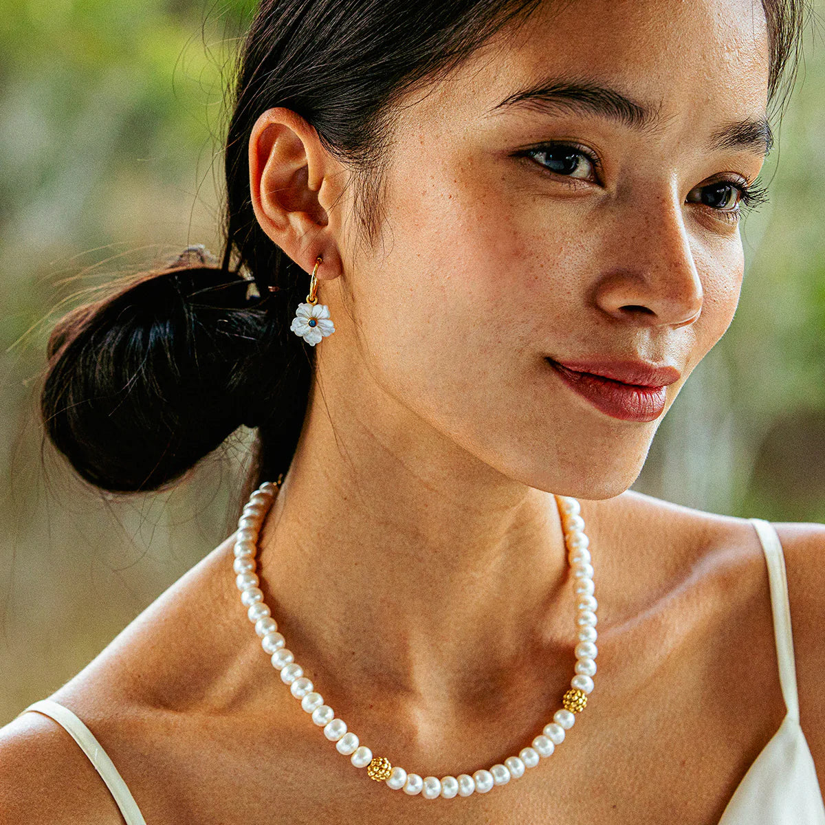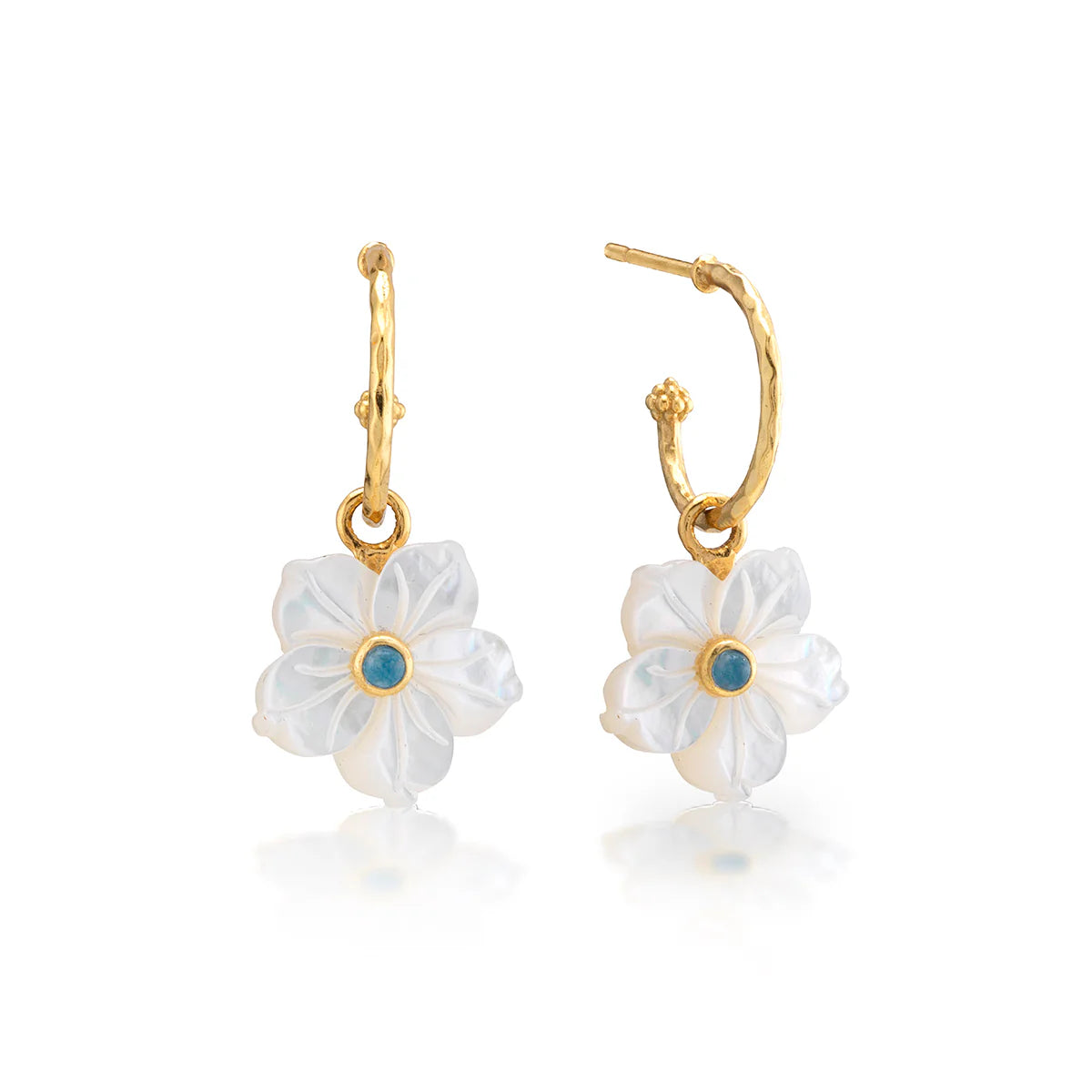 Mermaid Garden Hoop Earrings with Flower Charm in MOP
