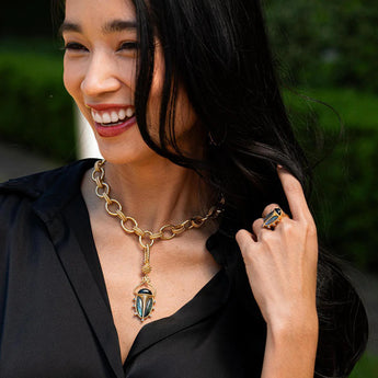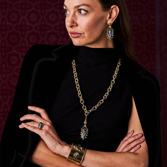 - Black Agate, Blue Labradorite, Crystals, 18K Gold over Brass with Anti-Tarnish Coating
