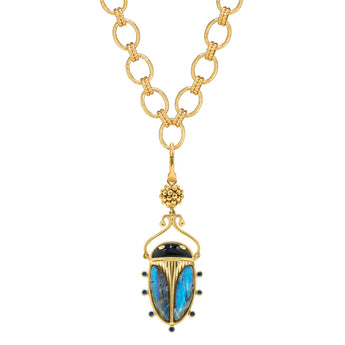 Scarab Pendant in Blue Labradorite/Black Agate