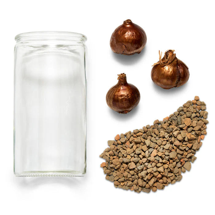 • Kits are elegantly packaged in a glass vase and include a premium bulb(s) tucked inside a recyclable paper bag, grow medium, and simple instructions.