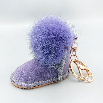 • Add charm to your keys or bags with this mini boot keychain featuring a soft pom accent.