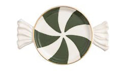 Peppermint shaped tidbit plate with hand-painted gold rims.