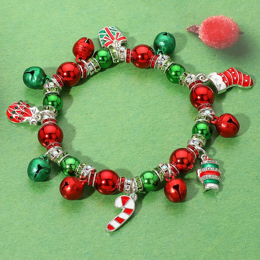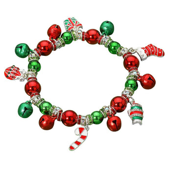 • Celebrate the holidays in style with this jingle bell Christmas charm bracelet. Featuring festive beads and holiday-themed charms like stockings, candy canes, and ornaments, it’s perfect for seasonal cheer.