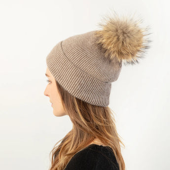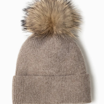Knit Pom Pom Hat in Taupe