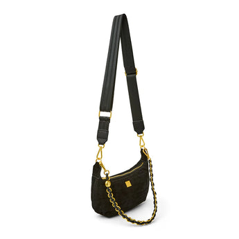 - Includes detachable woven luxe and chain strap, styling note…slip the strap through the D rings to double the strap for a modern shorter strap