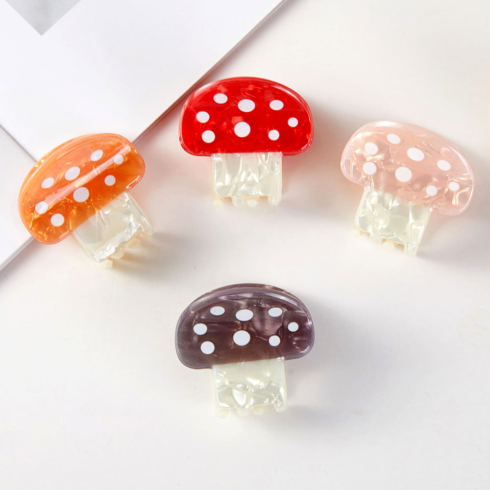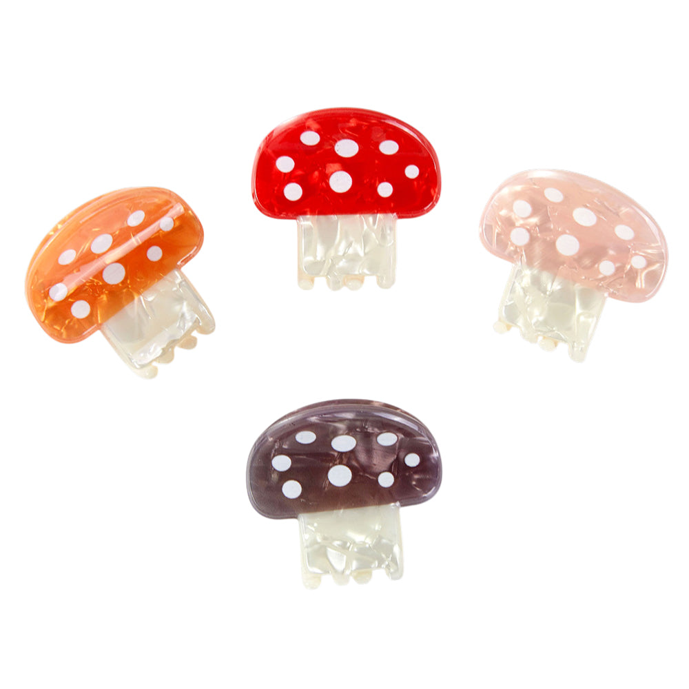 • Size : 1.5" X 1.25"• Playful mini hair claw clip set featuring cute mushroom designs, perfect for securing bangs, flyaways, or half-up styles. Compact and lightweight for everyday wear.