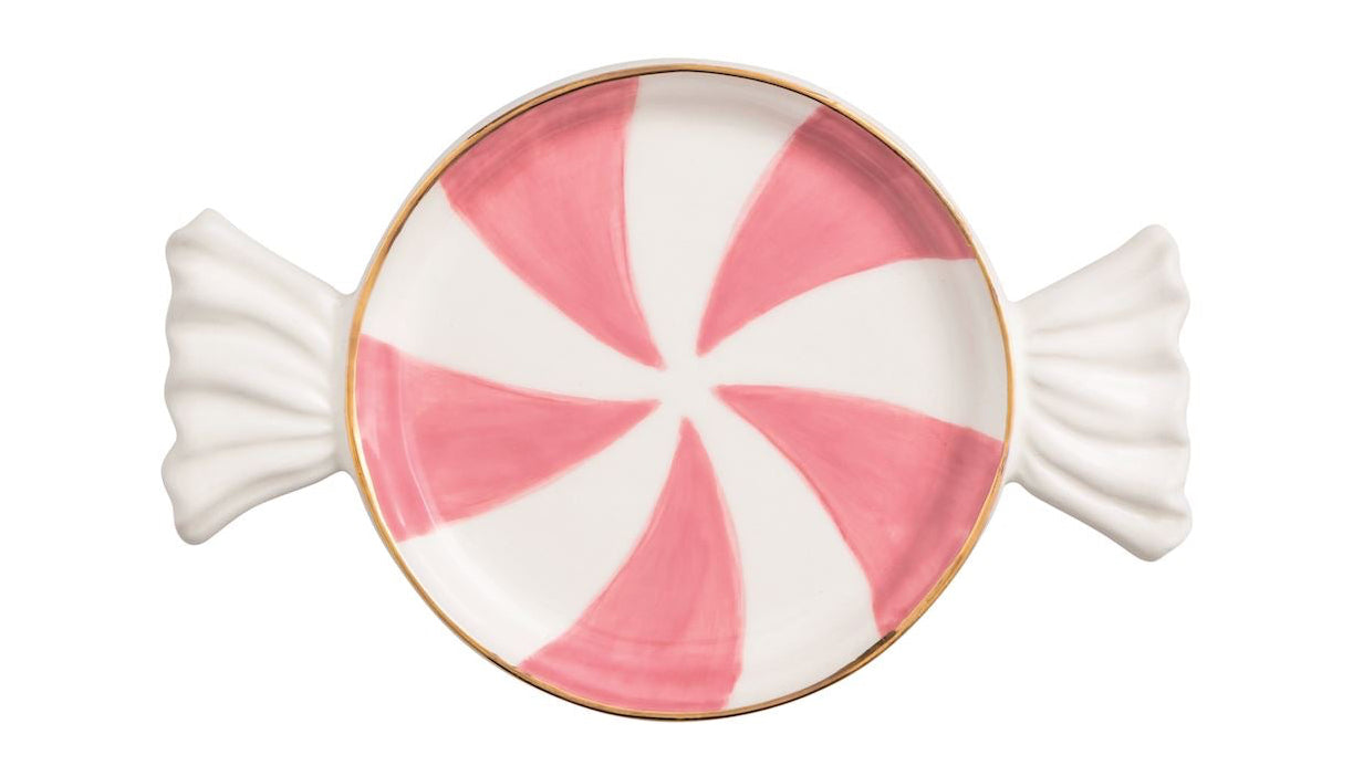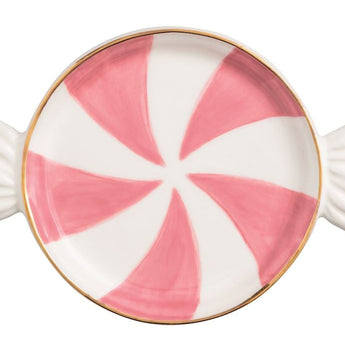 Peppermint shaped tidbit plate with hand-painted gold rims.