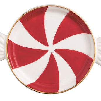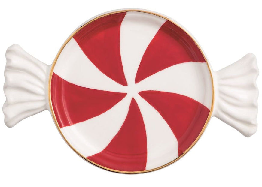 Peppermint shaped tidbit plate with hand-painted gold rims.