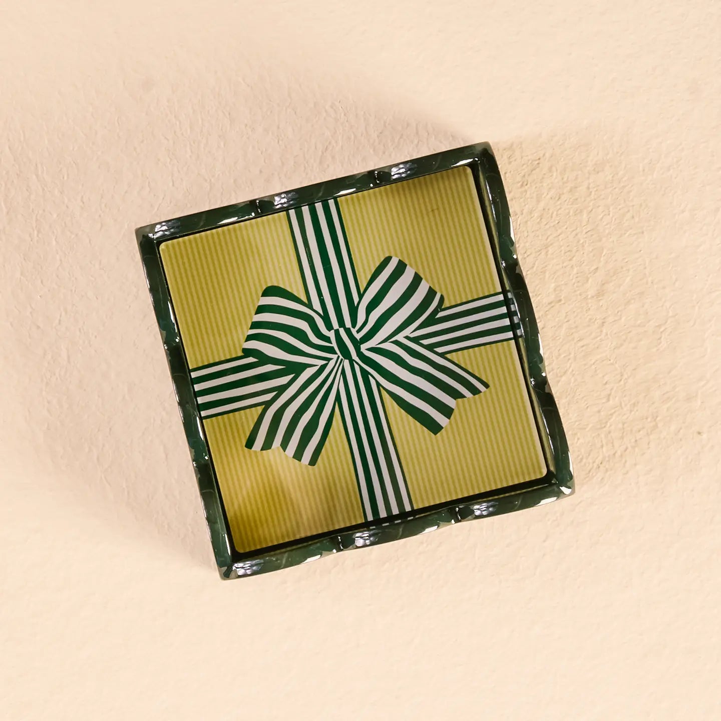 Darling scalloped rim detail Featuring floral or festive design Store bracelets, earrings and more! Glossy finish Dimensions: 4”L x 4”W x 1”H