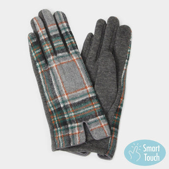 Plaid Check Gloves - Grey