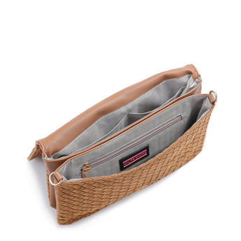 - Flap crossbody with 2 accordion segments. Exterior back slip pocket. Interior slip and zip pockets.