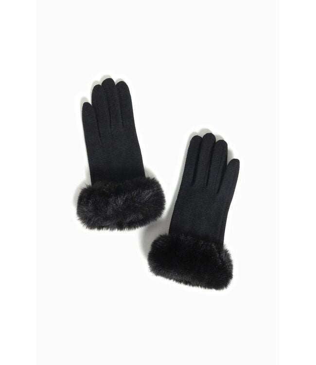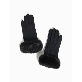 Faux Fur Cuffed Glove in Black